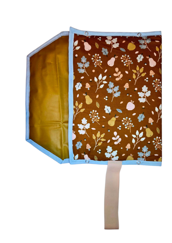 Doekjes en luiers worden opgeborgen in het matje dat je vervolgens tot A4 formaat kan opvouwen.