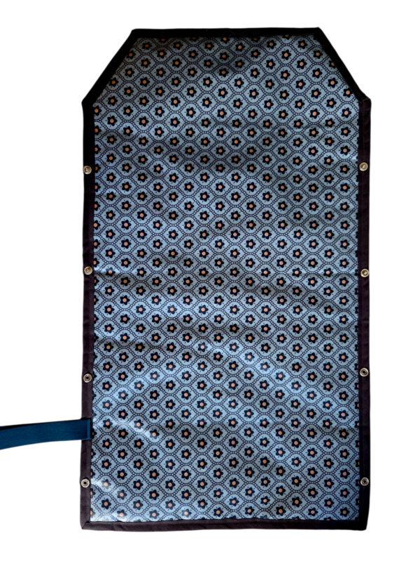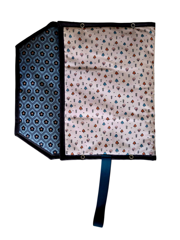 Boompjes heeft simpele boompjes aan de buitenkant en bloemetjes in geplastificeerd katoen aan de binnenkant. petrol elastiek